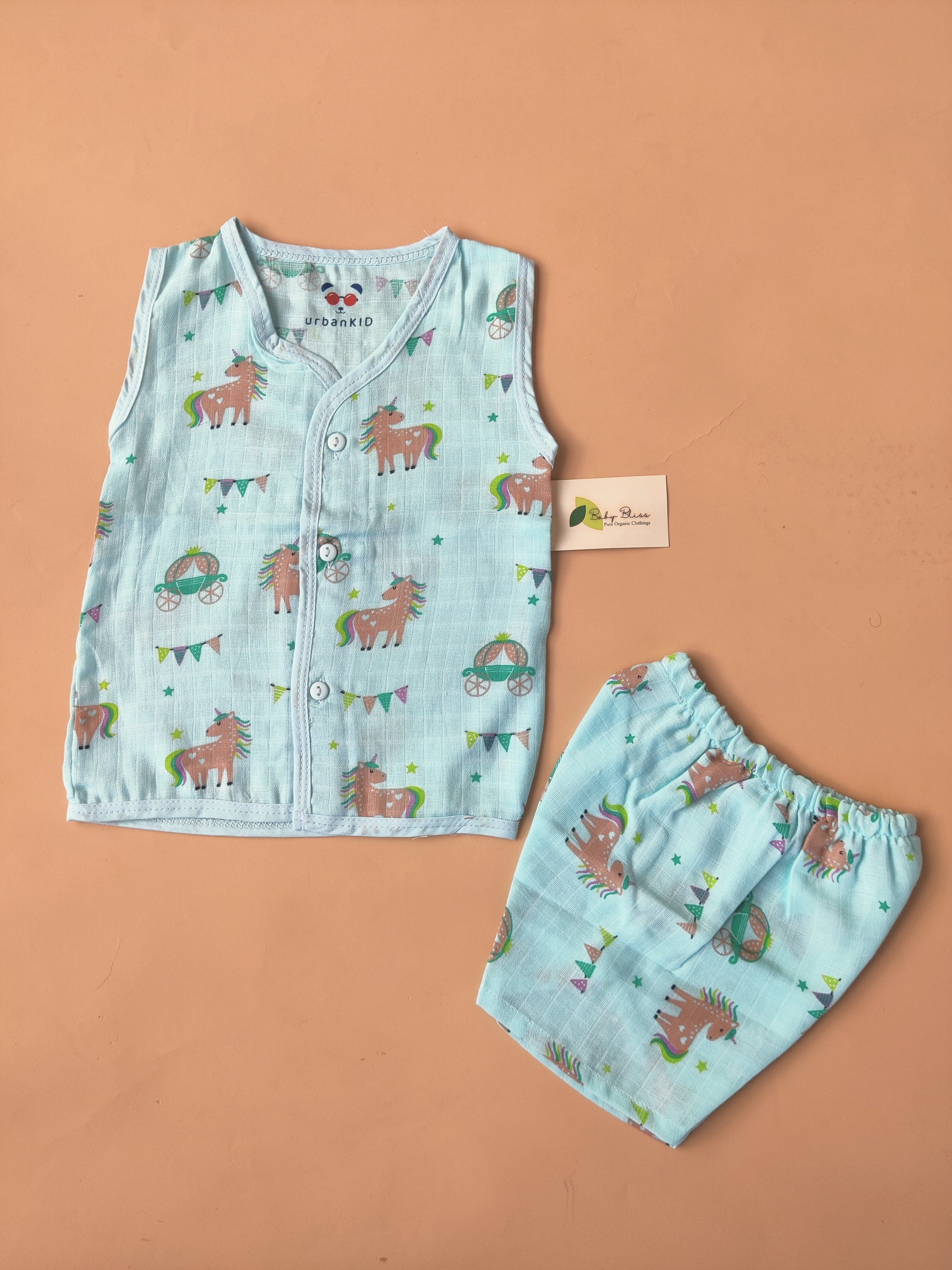 Keep your little one cool, comfy, and free to move with our muslin sleeveless jabla and shorts set, designed for newborns to toddlers up to 3 years. Made from soft, breathable muslin cotton, this set is gentle on delicate skin, lightweight, and perfect for warm weather and active play.