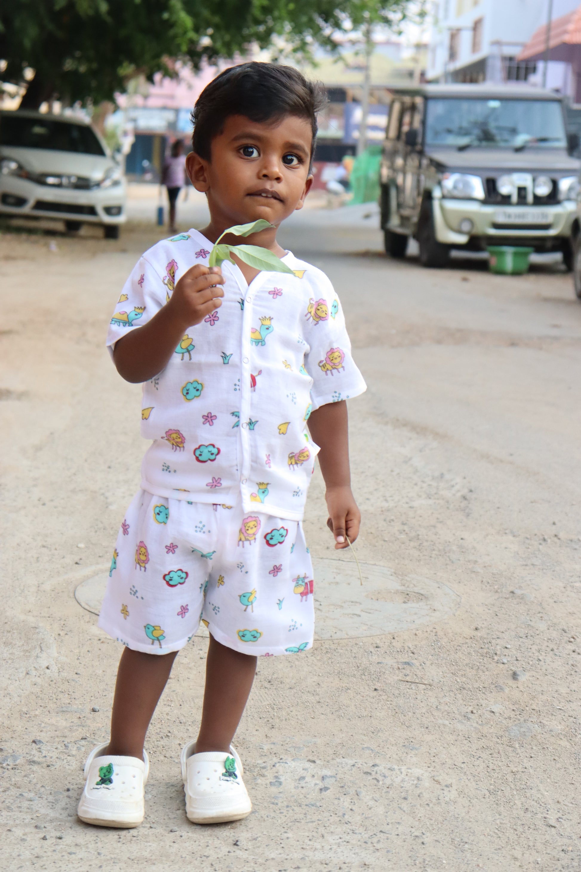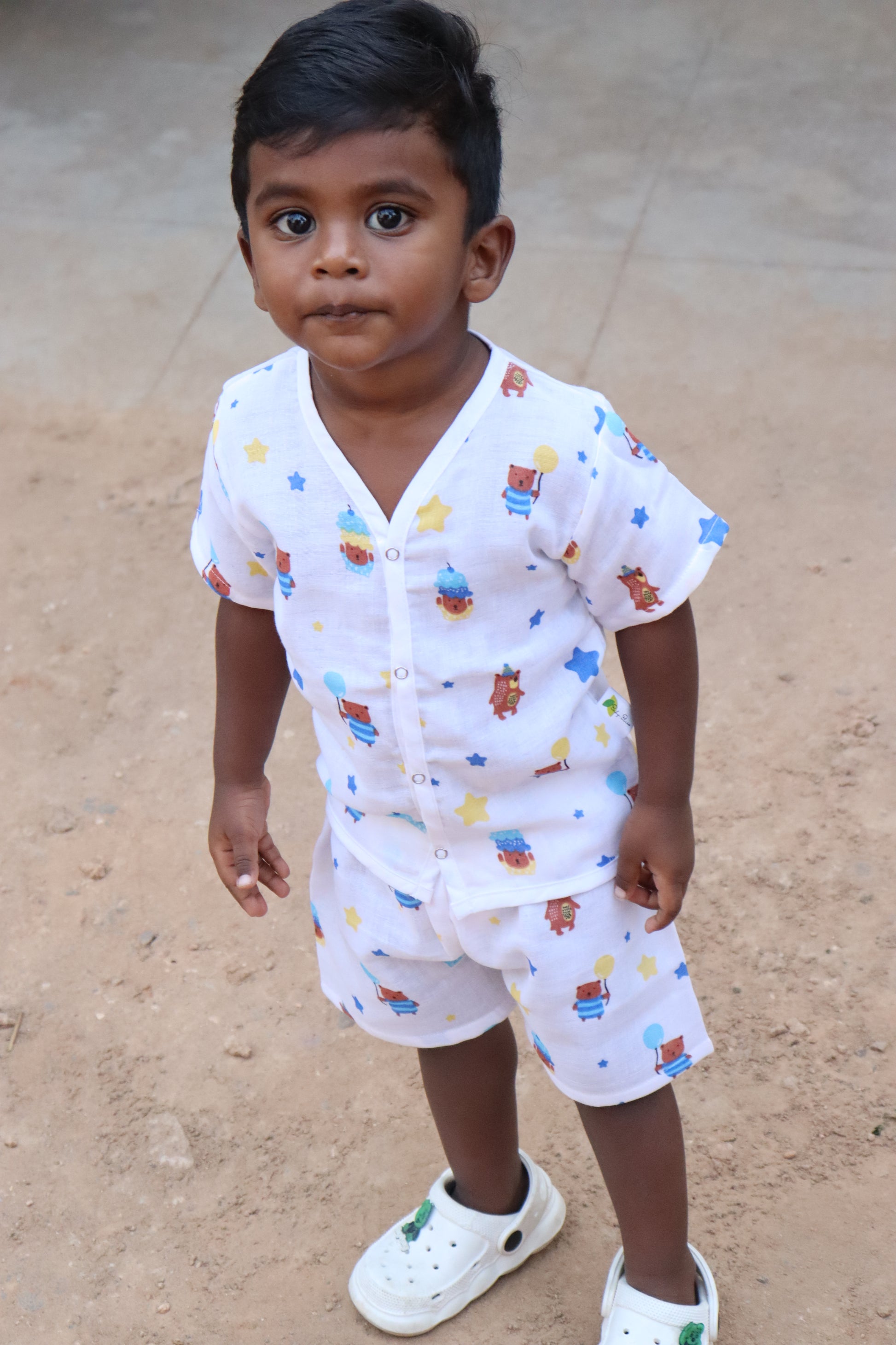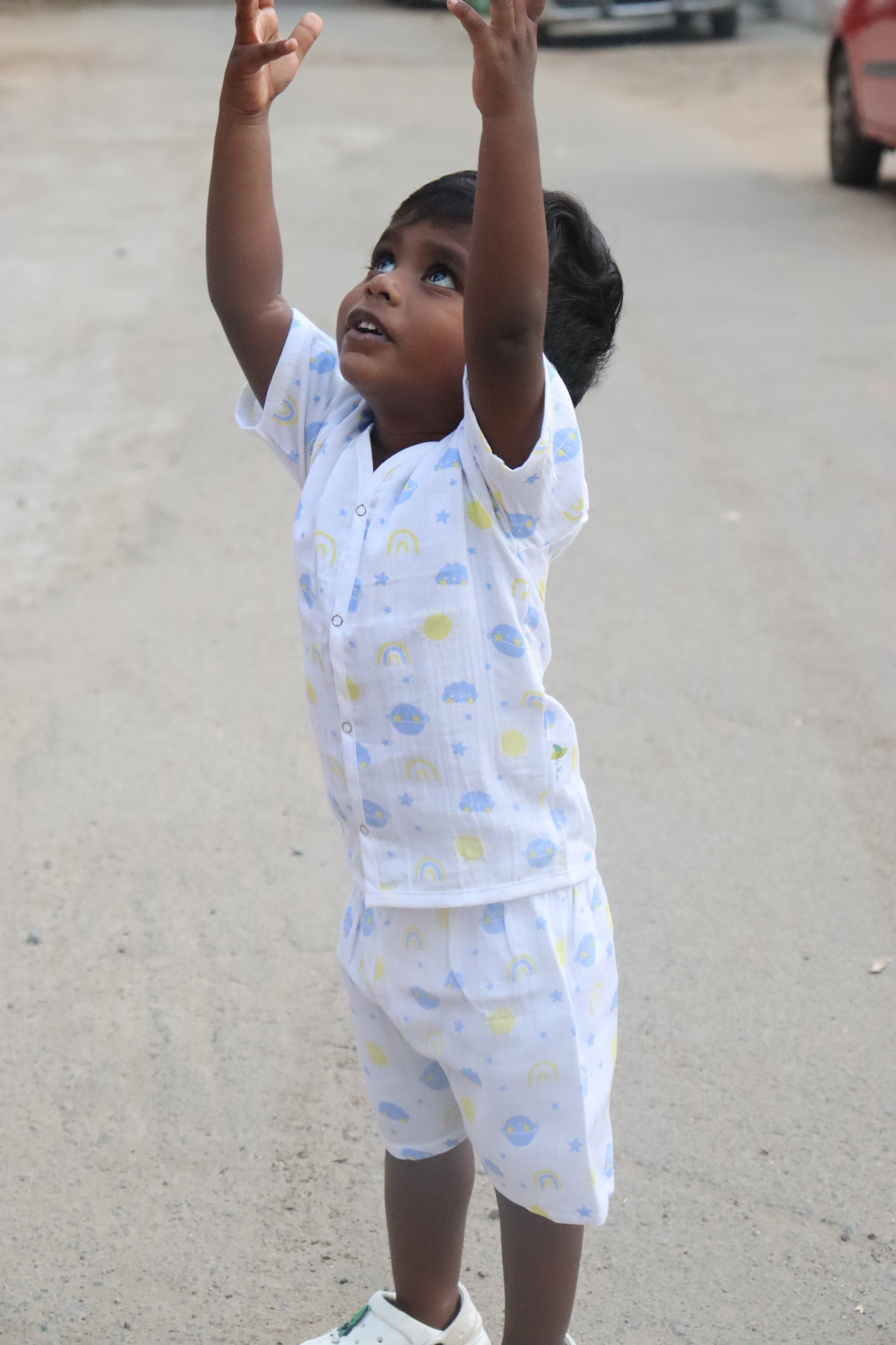 Keep your little one cool, comfy, and free to play with our muslin half sleeve jabla and shorts set, designed for newborns and toddlers. Made from soft, breathable muslin cotton, this set is gentle on delicate skin, lightweight, and perfect for warm days and daily wear.