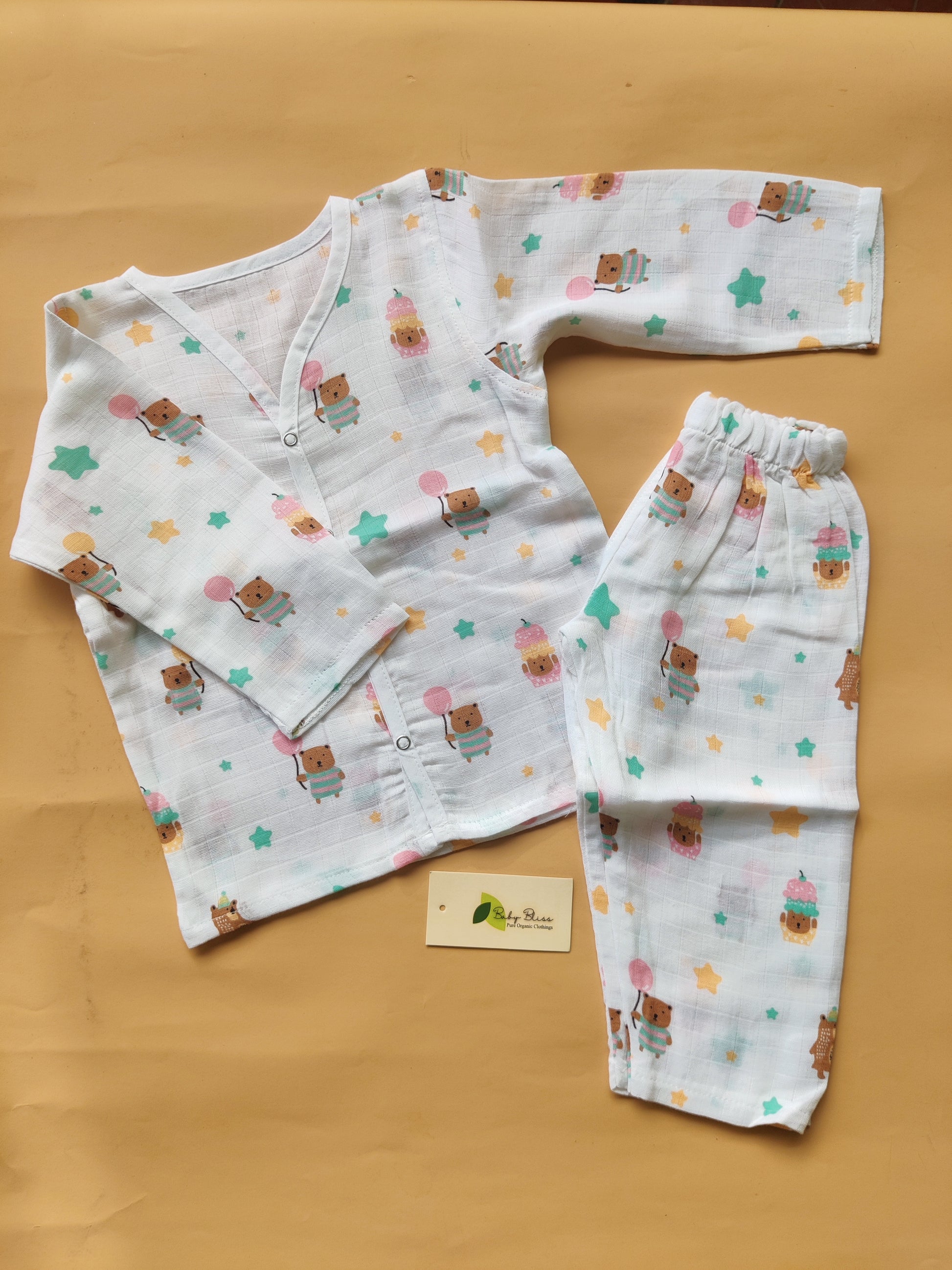Ensure your baby sleeps peacefully and comfortably with our muslin sleepsuit, crafted from soft, breathable muslin cotton. Designed to be gentle on delicate skin, this sleepsuit allows airflow, preventing overheating, and keeps your little one cozy all night long. Ideal for naps, bedtime, and light lounging, it is a must-have newborn essential.