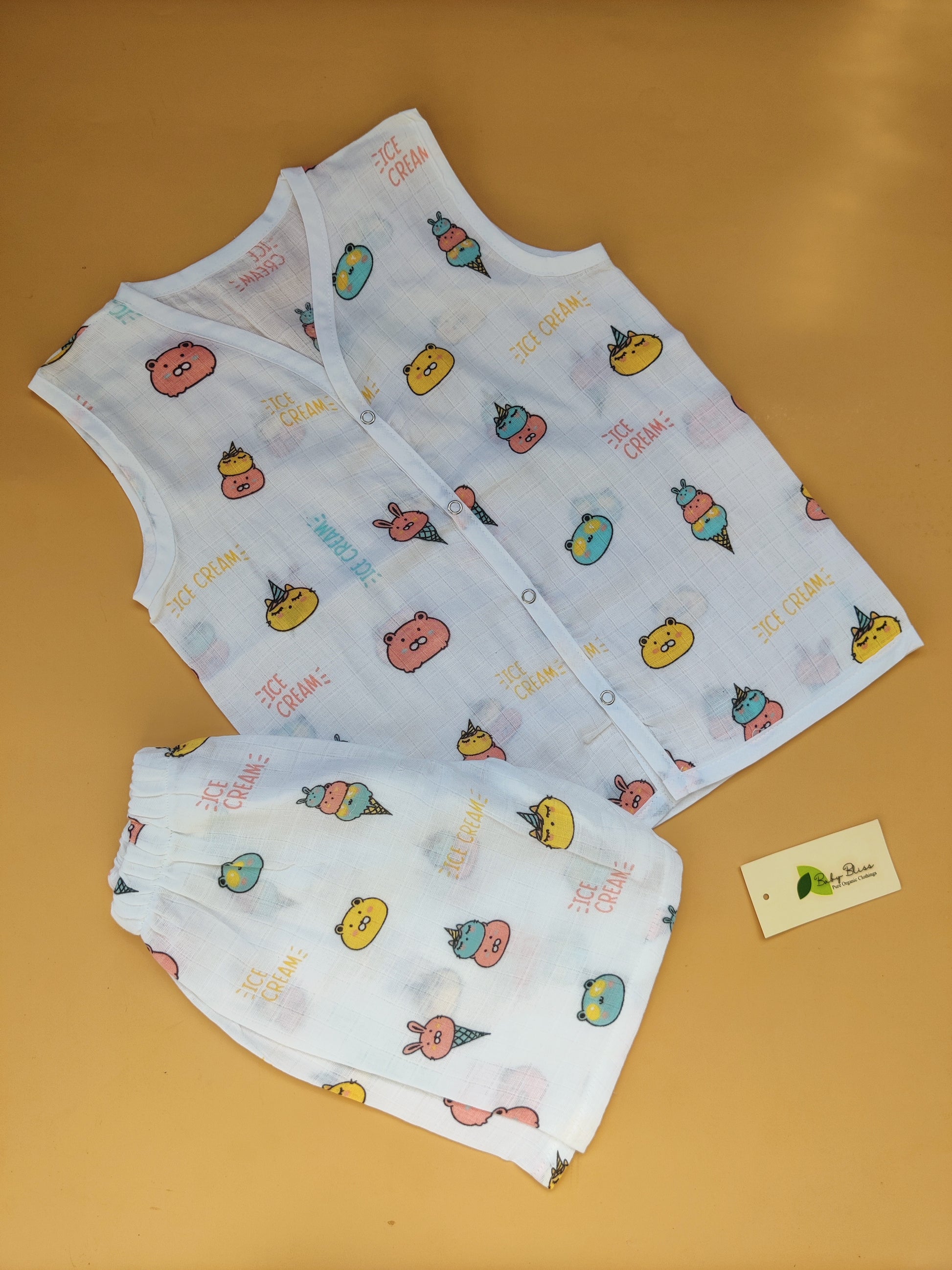 Muslin Sleeveless Jabla + Shorts ( 1-3 Yrs)