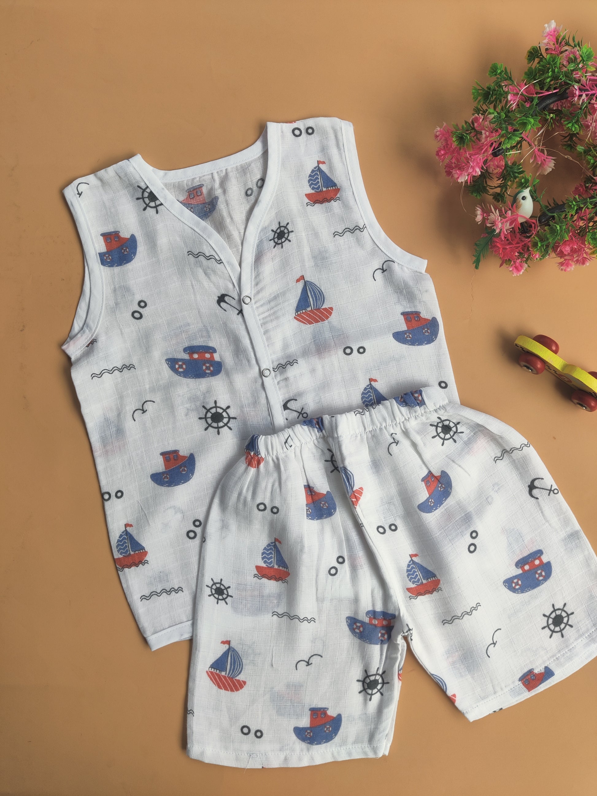 Muslin Sleeveless Jabla + Shorts ( 2-3 yrs)